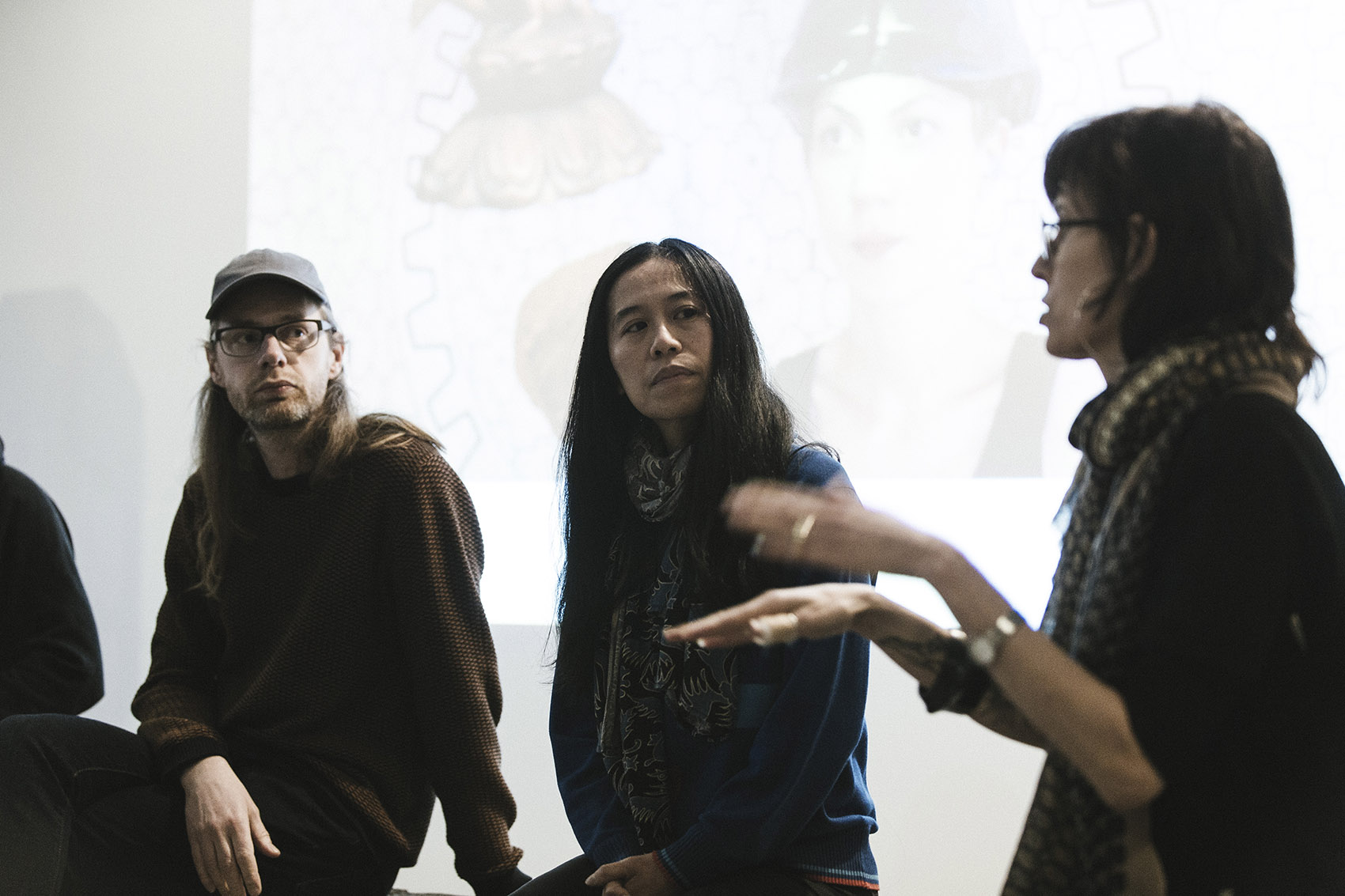 Panel discussion with co-curator Monica Bello (Arts at CERN) and artists Jack Jelfs (hrm199), Suzanne Treister, Diann Bauer, Yu-Chen Wang.